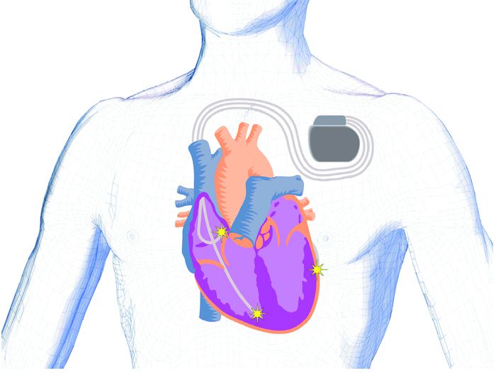 CRT-Herzschrittmacher: Über je eine Elektrode in der rechten und linken Herzkammer sorgt das CRT-System dafür, dass die Herzkammern synchron – also gleichzeitig und geordnet – schlagen (Kardiale Resynchronisationstherapie, kurz CRT). Über die Elektrode in der rechten Herzkammer werden außerdem langsame Herzrhythmusstörungen („Bradykardie“) behandelt. Über eine dritte Elektrode, die im rechten Vorhof des Herzens liegt, kann das CRT-Gerät Herzrhythmusstörungen im Vorhof erkennen und behandeln.