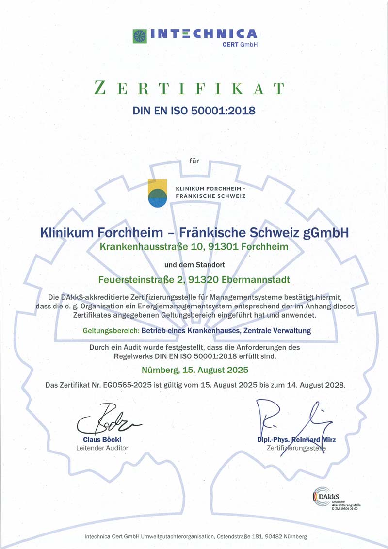 Als Klinikum möchten wir umweltbewusst und ressourcenschonend wirtschaften. Aus diesem Grund verpflichten wir uns, die energiebezogene Leistung und das EnMS fortlaufend zu verbessern. Dies beinhaltet die Steigerung der Energieeffizienz sowie die Reduzierung des spezifischen Energieverbrauchs an den Standorten Forchheim und Ebermannstadt.
